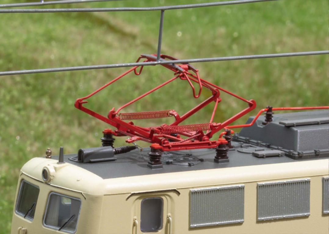 Modell: Mit Digital-Decoder mfx+ und umfangreichen Geräuschfunktionen. Geregelter Hochleistungsantrieb mit Schwungmasse, zentral eingebaut. Alle vier Achsen über Kardan angetrieben. Haftreifen. Fahrtrichtungsabhängig wechselndes Dreilicht-Spitzensignal und zwei rote Schlusslichter konventionell in Betrieb, digital schaltbar. Spitzensignal an Lokseite 2 und 1 jeweils separat digital abschaltbar. Doppel-A-Licht-Funktion. Führerstands- und Maschinenraumbeleuchtung digital schaltbar. Beleuchtung mit wartungsfreien warmweißen und roten Leuchtdioden (LED). Detailliert ausgeführte Dachaufbauten mit neu konstruierten Stromabnehmern der Bauart DBS 54. Stromabnehmer digital heb- und senkbar. Viele separat angesetzte Teile wie Griffstangen, Tritte und UIC-Steckdosen. Pufferhöhe nach NEM. Kinematikgeführte Kurzkupplungen. Lokführerfigur im Führerstand 1 sitzend. Bremsleitungen und Schraubenkupplungen liegen als separat ansteckbare Teile bei. Länge über Puffer ca. 19 cm.