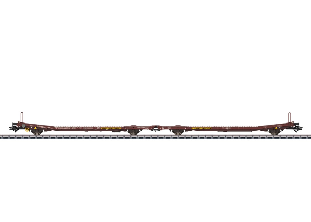 Vorbild: Flachwagen-Paar Bauart Laads 800B der Transwaggon GmbH, Hamburg. Rotbraune Grundfarbgebung. Betriebszustand ab 2005.